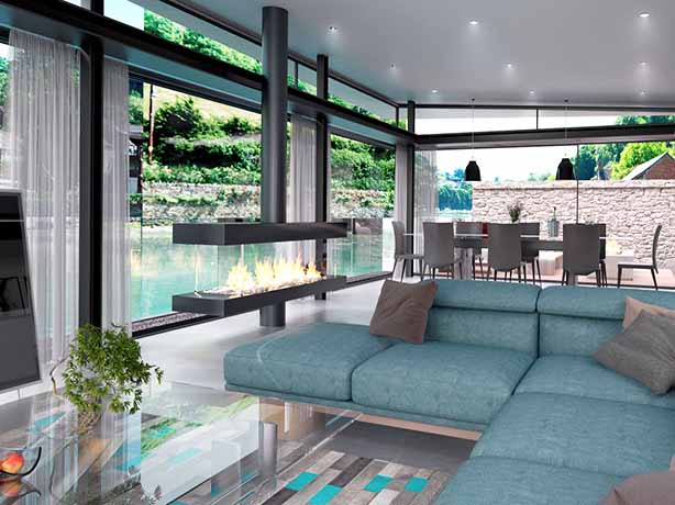 The building incorporates Smart technology control systems, innovative energy efficient heating and cooling systems tailored to the client's needs, unique fabricated polished stainless-steel roof modelled on nautical principles, the most advanced low profile structural glazing systems available, polished concrete floors and hand-crafted bespoke finishes.