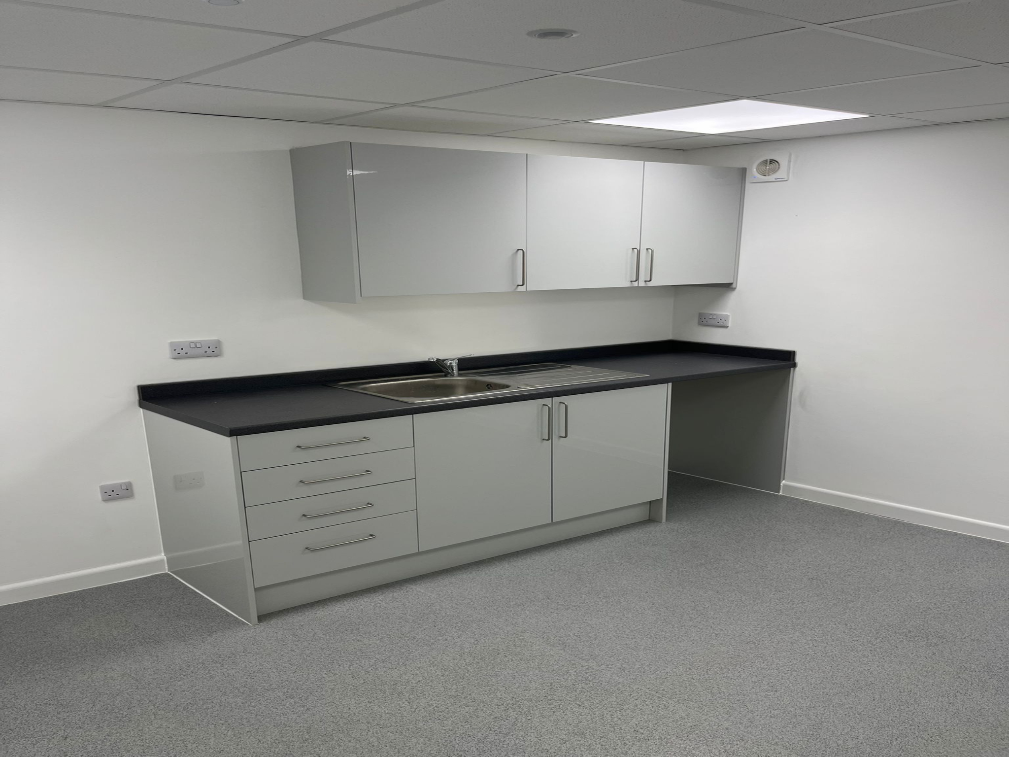 In order to revitalise Unit 7C, we started a large construction project at Madeleaze. Before starting any masonry repairs, we carefully disassembled the current offices and isolated building services. Drainage inspections and asbestos removal guaranteed functionality and safety. Improvements included composite roofing, electrical services, new windows, and cladding repairs. New floor coverings, contemporary bathrooms, and ornamental accents were among the interior improvements. Groundwork, tarmac, and new drainage systems created a strong base, while concrete hardstanding guaranteed longevity. The project's sustainability was prioritised with the installation of PV panels.